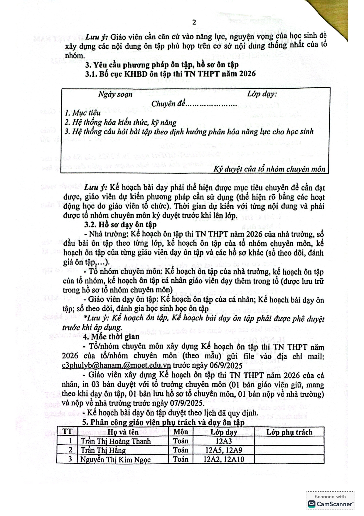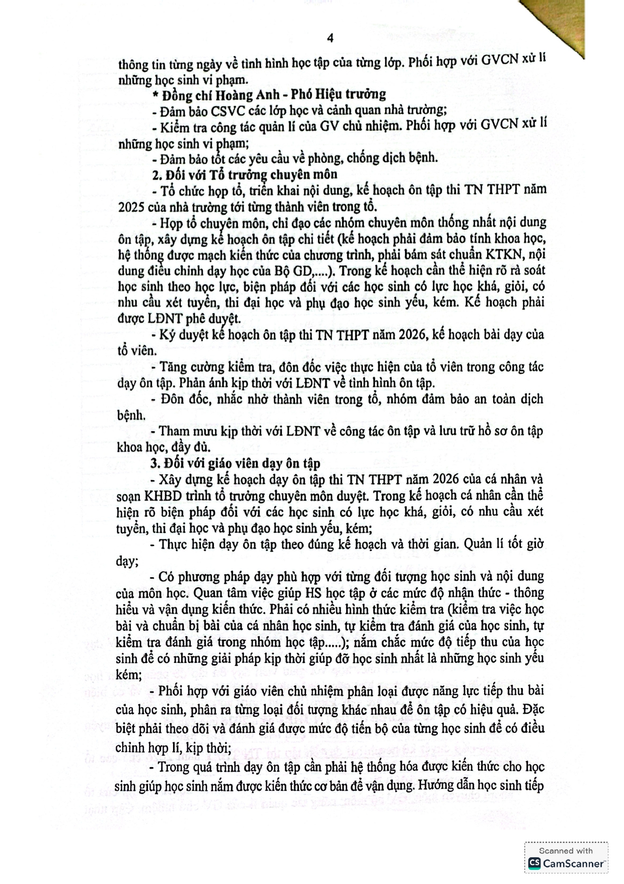KẾ HOẠCH ÔN THI TỐT NGHIỆP THPT NĂM HỌC 2025