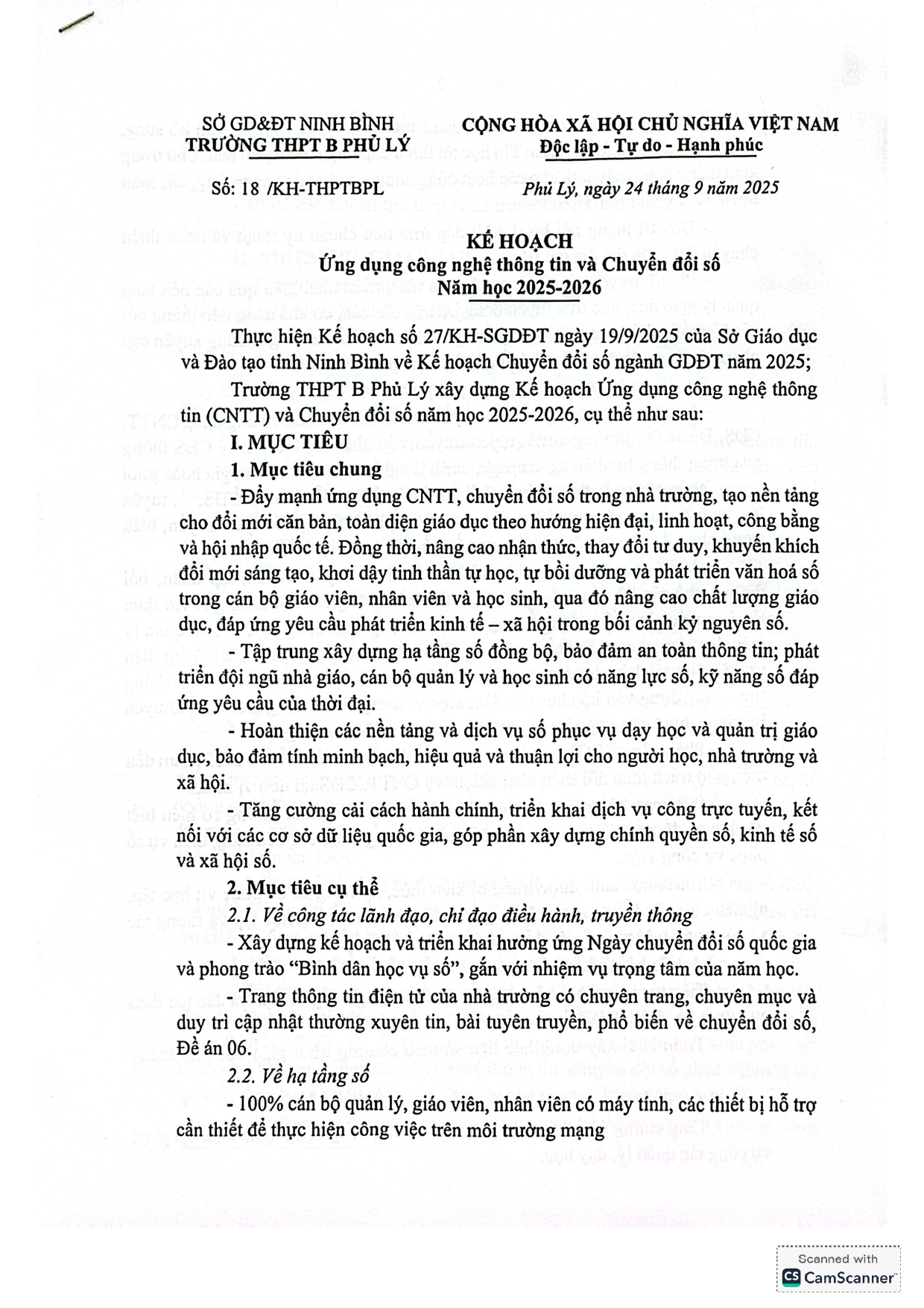 KẾ HOẠCH ỨNG DỤNG CNTT VÀ CHUYỂN ĐỔI SỐ NĂM HỌC 2025 - 2026