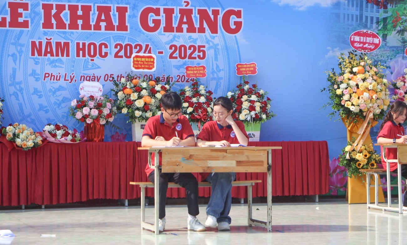 Trường THPT B Phủ Lý cũng bước vào một năm học mới với buổi khai giảng đã được tổ chức và diễn ra một cách tốt đẹp. Trời hôm đó nắng đẹp, ánh nắng phủ lên vạn vật khiến chúng có một màu vàng dịu nhẹ. Đó như một báo hiệu cho thấy năm học này sẽ lại diễn ra với muôn vàn thuận lợi.