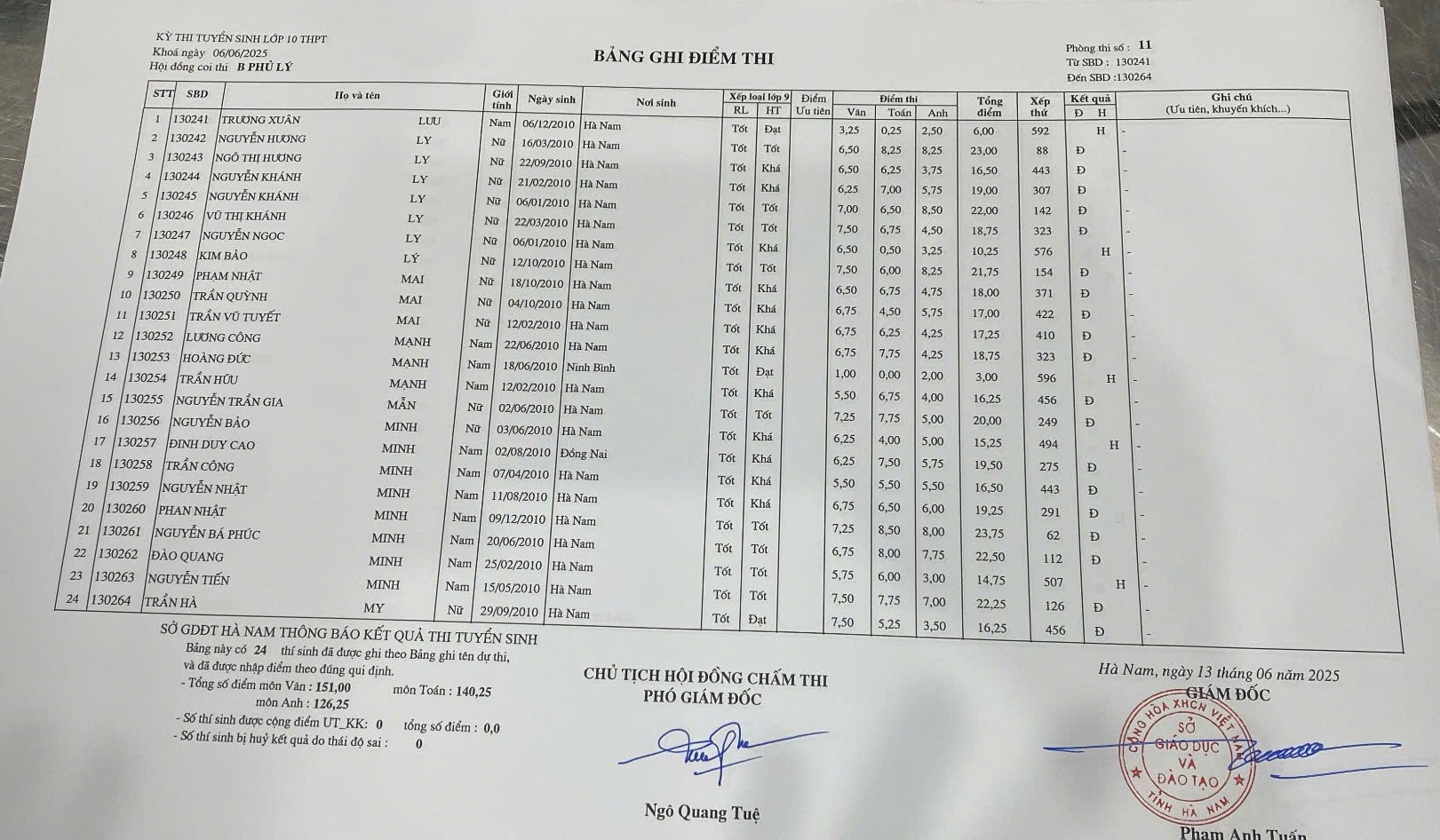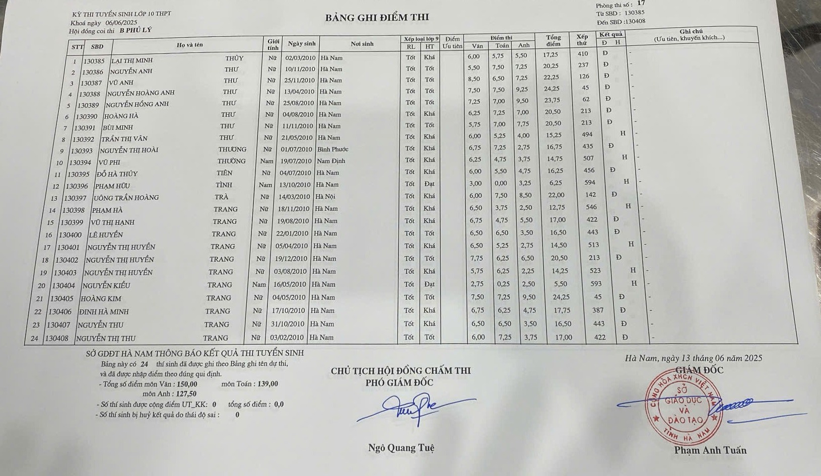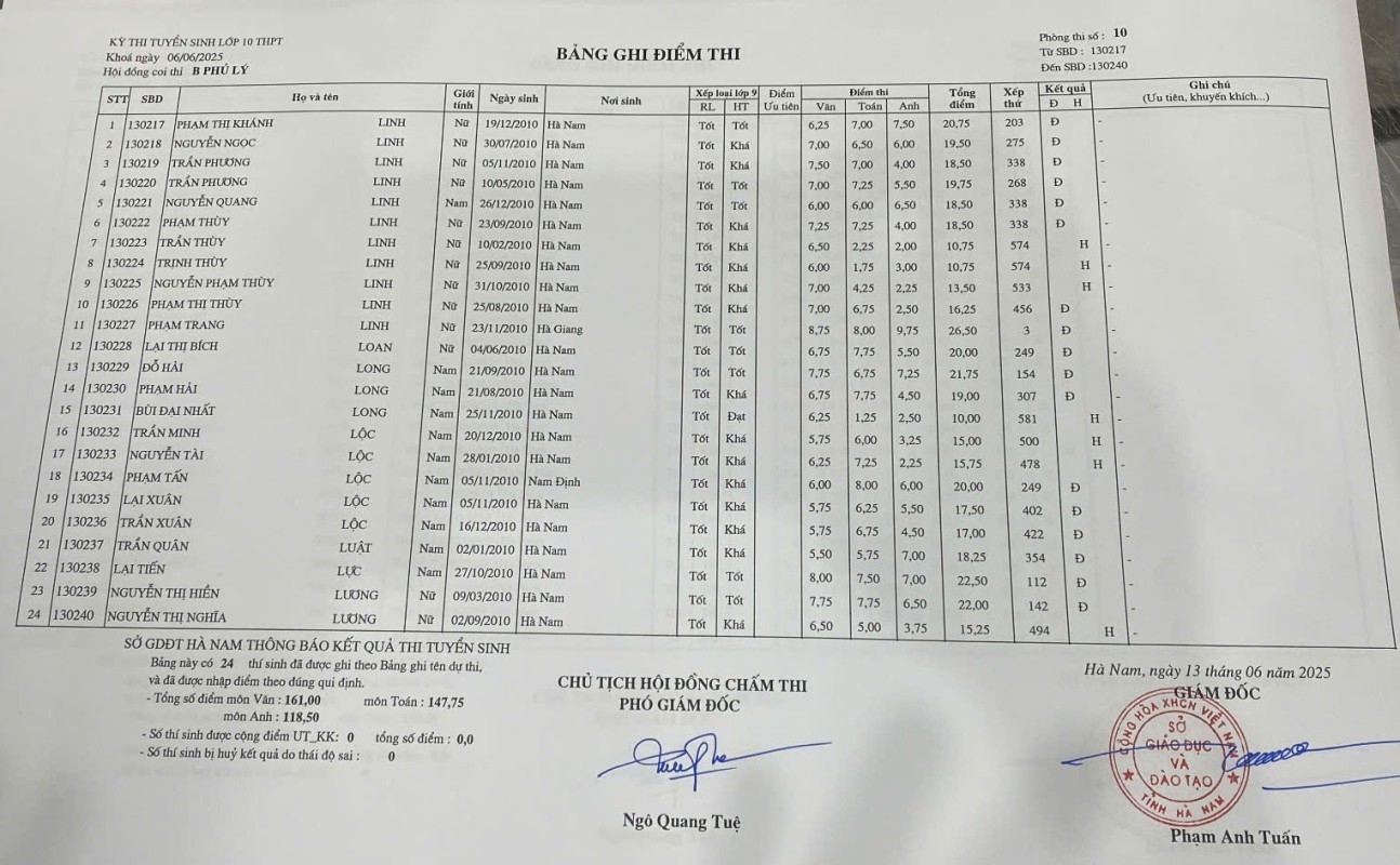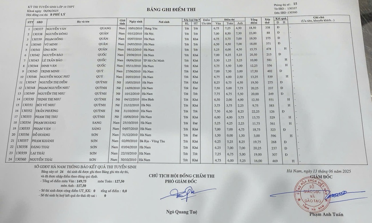 Căn cứ vào kết quả kỳ thi tuyển sinh vào lớp 10 THPT năm học 2025–2026 do Sở Giáo dục và Đào tạo Hà Nam tổ chức, điểm chuẩn trúng tuyển nguyện vọng 1 vào Trường THPT B Phủ Lý là 28,75 điểm.