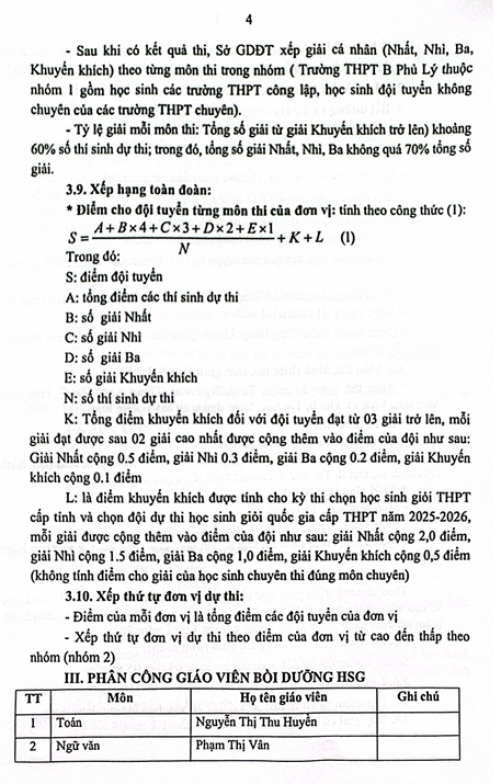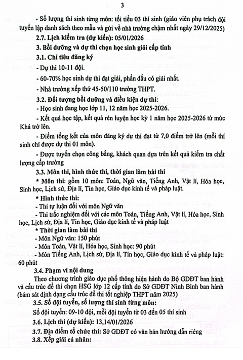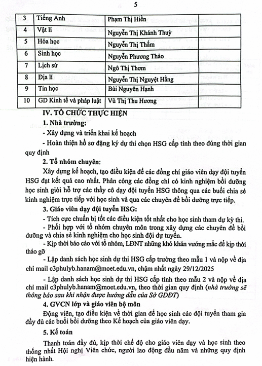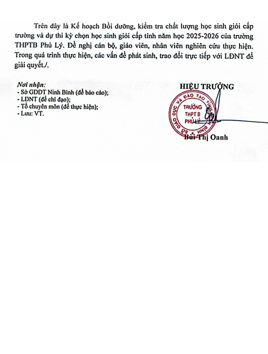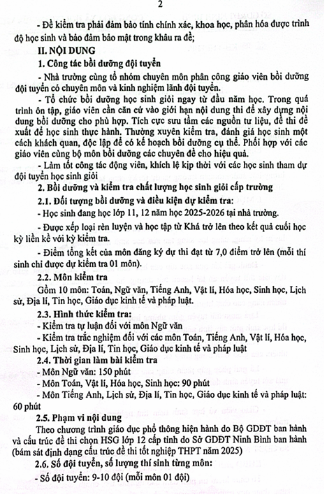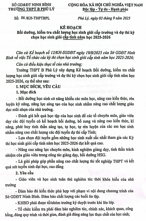 Kế hoạch kiểm tra, bồi dưỡng HSG cấp trường và thi HSG cấp tỉnh năm 2025