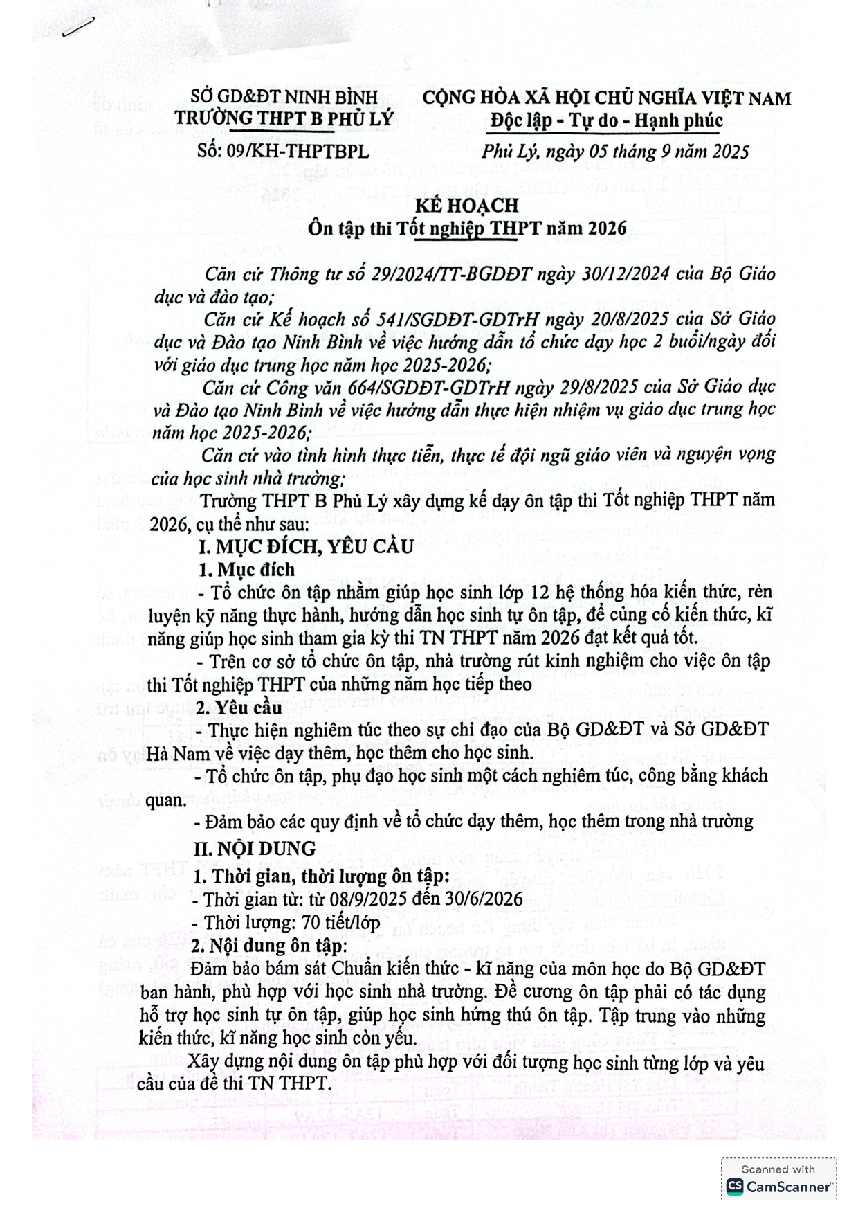KẾ HOẠCH ÔN THI TỐT NGHIỆP THPT NĂM HỌC 2025